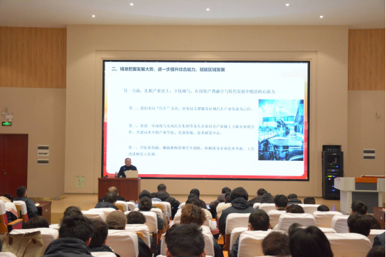 为深入学习贯彻党的二十届四中全会精神,引导全体师生准确把握全会核心要义,将思想和行动统一到党中央决策部署上来,12月31日,党委副书记、校长王保成教授以《深学细悟四中全会精神,凝聚实干强国磅礴力量,奋力在民族复兴伟业中书写华丽篇章》为题作专题宣讲报告,智能网联汽车学院全体教师、部分学生代表参加会议。
